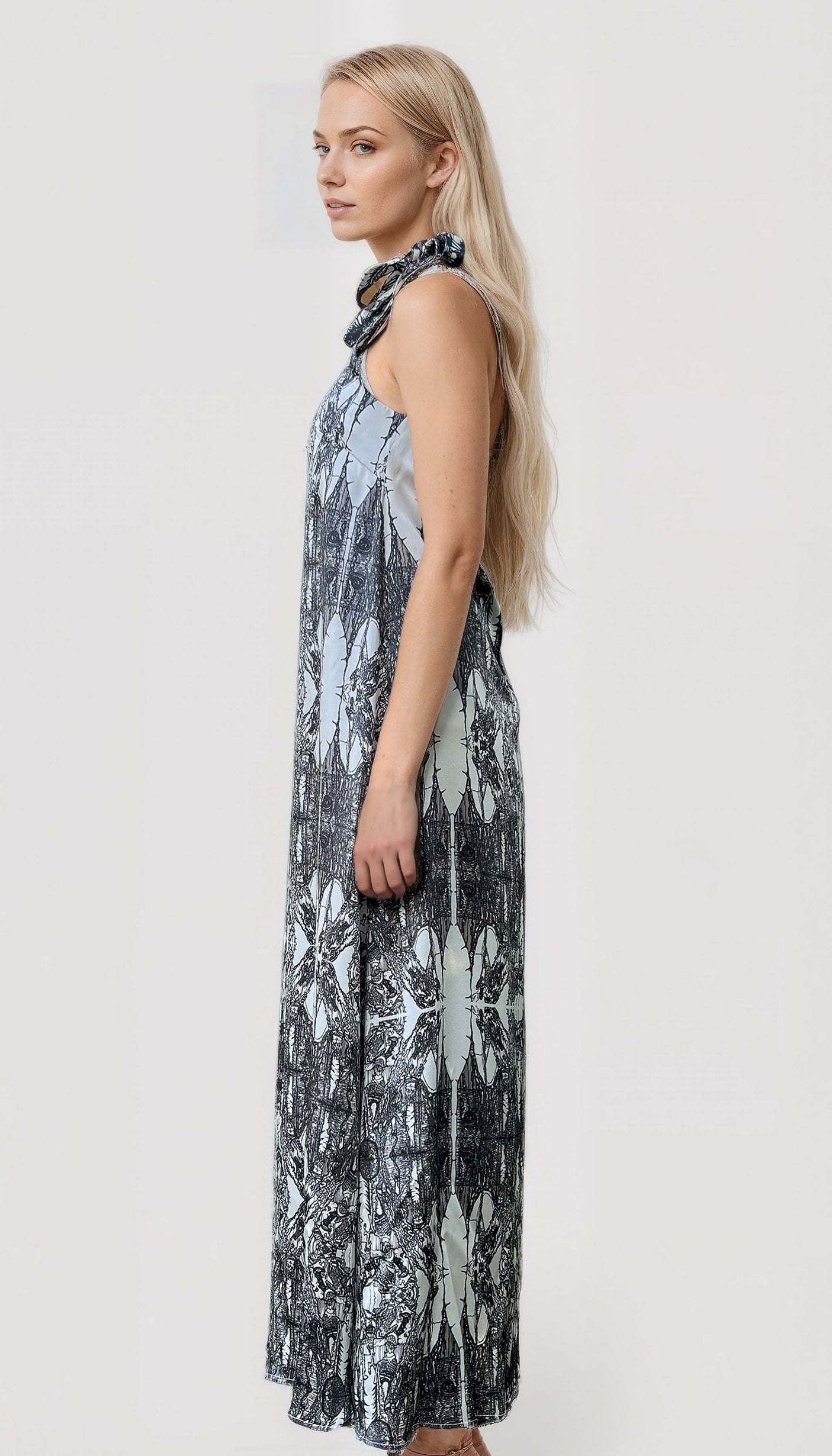 This silk dress brings bold vibes with a sleek, flowing drape.